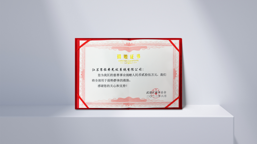 赛拉弗董事长李纲先生表示,“慈善是一缕和煦的阳光,本次慈善捐助是赛拉弗积极响应政府号召,回馈社会的具体表现。多年来,赛拉弗以高效光伏传播绿色价值,充分发挥自身产业优势,为社会经济发展做出积极贡献的同时,不忘自身所肩负的责任和使命,全力为社会公益慈善事业提供资源和支持,用实际行动彰显‘改变未来,让世界更美好’的温暖力量。”